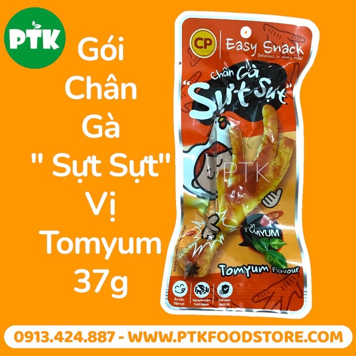 Chân gà (94%), dầu hào, đường, muối, tương ớt Taeyangcho, chất điều vị (INS 621), chất ổn định (INS 450(i), INS 450(ii), INS 450(iii), INS 451(i), INS 452(i)), chất chống oxy hóa (INS 316), bột hồi, bột quế, bột gừng, bột gia vị Tomyum (0,9%), hương liệu thực phẩm tổng hợp (hương tiêu, hương tỏi, hương nhục đậu khấu, hương ớt), phẩm màu tự nhiên: chiết xuất trái dành dành, xi rô caramel hóa từ đường, chất bảo quản (INS 234).